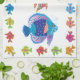 Big blue and some multi coloured little fish swimming across your tote. Comes with a matching kitchen towel, plate, mug and T-shirt. A fun towel for your kitchen! All designs and illustrations ©GwenGordonArt all rights reserved; May not be used without written permission.