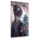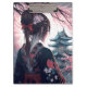 Computer-generated design of a Geisha. A picture of a woman with a nice hairstyle and flowers in her hair wearing a kimono in a simple design with light lines. Japanese design in AI - Midjourney Style. The pastel painting creates a dreamy atmosphere.