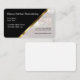 Classy kitchen and bath remodeling business card template in a luxury design including gold coloured geometric divider line that organises your layout and graphic design image of kitchen cabinets lightly printed on the background so your text stands out. Designed for a home remodeling service.