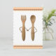 Creative bridal shower invites featuring cartoon fork and spoon bride and groom couple. Perfect for a kitchen bridal shower or wedding brunch.