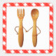 Creative bridal shower gift stickers, party favour labels or envelope seals featuring a cute bride and groom fork and spoon on a red gingham background.