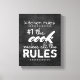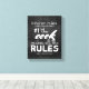 A kitchen canvas wall art has text humour quote charcoal grey textured background with white text for fun home decor.
