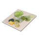 Brighten your kitchen with these charming ceramic tiles decorated with images of freshly grown vegetables. Gues Who has created nine patterns, each with a different set of home grown garden vegetables. Each style has an herb/beige background. The 4.25 x 4.25 size makes these tiles perfect to use as a spoon holder for a ladle, baster or spoon as you are preparing your family's meal. Choose all nine tiles and use them as a colourful border for your kitchen back-splash or, choose a few and use them as a collage to brighten your kitchen wall.