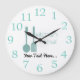 Kitchen Chef Logo Mint Green White Clock, for kitchen, foodies, with mint green text, customise it with your own! And, you can change the background colour too!