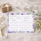 Kitchen Gift Elegant Purple Floral Recipe Card