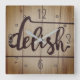 Kitchen Graphics Word DELISH Rustic Brown Square Wall Clock