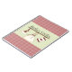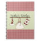 Write down all your favourite recipes in your very own personalised notebook. Design features a lovely red country plaid kitchen theme. Use the text template to insert any wording you desire. Notebook pictures a country like red plaid top and bottom with a light sage green strip across the centre and a design of a heart themed oven mitt, apron and baking hat hanging from hooks of a shelf. Great house warming gift.