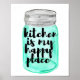Watercolour mason jar in turquoise blue with brush font quote Kitchen is my happy place for a nice artsy decor