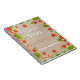 Gift for a cook. Kitchen notebook which has a border of Strawberries on a wooden table background. Add the name of the recipient.