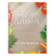 Personalised Kitchen notebook which has a border of fresh food items on a wooden table background. Add the name of the recipient.