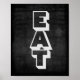 A typography kitchen poster has bold text eat on distressed charcoal grey background wall art decor for the kitchen.