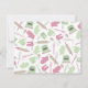 A kitchen shower invitation featuring a cooking themed design consisting of hand mixers, oven mitts, wooden spoon, rolling pins, spatula, whisks, and retro stove. Design has a pink and green colour scheme. Personalise the text on front and back.