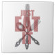 Add some humour to your kitchen or dining space with this graphic tile featuring antique illustrations of silverware backed by the words 'Just eat it' in bold red typography. Modern and fresh with a touch of vintage whimsy, this tile would make a great funny gift for the foodie in your life. Perfect as a coaster, trivet, or spoon rest. A great farmhouse accent!