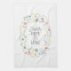 Trendy kitchen towel with the popular christian words: Faith, hope & love. Make a statement in your home with this beautiful kitchen towel! Designed with modern calligraphy and hand lettering, centred in a wreath of flowers. Great as a christian wedding or housewarming gift!