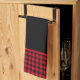 This kitchen towel is shown in a cute black and red buffalo plaid print design.