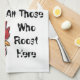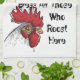"Bless all those who roost here" is the caption on this kitchen towel featuring a white chicken head. Customise this item or buy as shown.