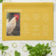 Shown on marigold yellow, this kitchen towel has photos of a Rhode Island White chicken rooster. Text of the bucket list consists of several joke/humourous statements a rooster might make on a bucket list. Customise this item or buy as shown.
