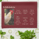 Shown on Burgundy Red, this kitchen towel has photos of a Rhode Island White chicken rooster. Text of the bucket list consists of several joke/humourous statements a rooster might make on a bucket list. Customise this item or buy as shown.