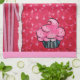 Beautiful pink personalised kitchen towel (made in the USA) with ribbons and stars, chocolate cupcakes and a big pink cupcake - PLEASE NOTE: It is a printed picture of ribbon - NOT real ribbon! Personalise or remove the customisable text. An adorable gift for women & girls. Use for it's intended purpose or hang on the wall as art!