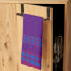 A richly colored Kitchen Towel or Tea Towel, with a mix'n'match design of traditional ogee shape patterns in shades of Purple and bold checks in Plum and Dazzling Blue.