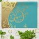 Kitchen Towel--Teal & Gold Swirls Tea Towel