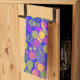 Elegant kitchen towel with purple and yellow abstract design. This product its customisable.