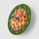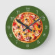 Fun kitchen wall decor clocks with graphic of a pizza pie covered in a mix of delicious toppings and classy clock face markings that add a stylish appearance. Suitable for use in your home, at your pizza shop, or a man cave room.