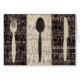 © Pela Studio / Wild Apple. A black and white image of a fork, spoon and knife. The background has words written on it.