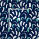 Cool deep blue fabric printed with a pattern of kite boarding kites and strings.