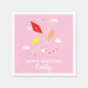 Kites in Sky Pink Girl Happy Birthday Party Napkins. Cute design with three kites in red, yellow and orange colours. The kites are flying in the pink sky between clouds. Add your name and make sweet personalised birthday napkins for a girl.