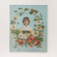 ....chromolithograph, lithograph print, retro, antique, Victorian era, eclectic, cute, floral, flowers, spring, elegant, fancy, sophisticated, stately, kitsch, kitschy, quirky, eclectic, portrait, wreath, poppies, daisies, young, youth, girl, lady, green, yellow, chic, quaint