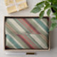Colourful stripes to compliment whimsical Kitschy Santa and Ornaments pattern which exudes playful nostalgia, transporting you to a bygone era of holiday cheer. The background is a warm, creamy beige reminiscent of vintage parchment, allowing the vibrant illustrations to pop with festive merriment.