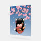 Kitsune Kokeshi Doll Black Fox Geisha Girl Blue Acrylic Sign