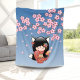 Kitsune Kokeshi Doll - Black Fox Geisha Girl Fleece Blanket