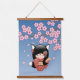 Kitsune Kokeshi Doll - Black Fox Geisha Girl Hanging Tapestry