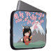 Kitsune Kokeshi Doll - Black Fox Geisha Girl Laptop Sleeve
