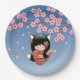 Kitsune Kokeshi Doll - Black Fox Geisha Girl Paper Plate