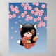 Kitsune Kokeshi Doll - Black Fox Geisha Girl Poster