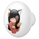 Kitsune Kokeshi Doll - Black Fox Girl Ceramic Knob