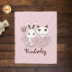 The product design features adorable bunny and kitten holding pink flowers. This pretty animal cartoon makes a cute and unique fleece blanket with personalised text for kids.