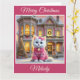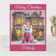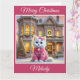 A sweet white kitten in a cute little sweater in front of a beautiful pink Victorian house in this enchanting Christmas card. Add your own personalised text.