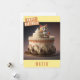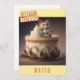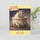 A birthday card featuring a kitten sitting on a birthday cake on the front with "Happy Birthday", all-caps bold font. Personalise the front by adding your name(s). The inside of the card features space for your typed or handwritten message.
