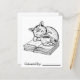 Adult colouring page with a cute kitten sleeping on a book next to a warm cup of coffee. Easy stress reducing colouring page.