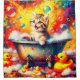 Add a touch of playful charm to your bathroom with our “Kitten Bubble Bath” shower curtain. This delightful design features a cute kitten sitting inside a vintage claw foot bathtub, reaching out towards floating soap bubbles. Surrounding the bathtub are vibrant paint splashes and four rubber duckies, creating a whimsical and lively scene. Perfect for children and animal lovers, this shower curtain brings a splash of fun and energy to bath time, making it a delightful and memorable experience for all ages.