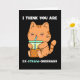 An adorable orange kitten sips some boba bubble pearl tea through a blue straw on a black background and has the sweetest message that says, I think you are ex-straw-ordinary; a play on words pun for extraordinary. Inside text says, And I'm not kitten! You can personalise the message inside by adding to it, changing it or deleting it to hand write in your own message for a customised message. Tell someone who loves cute kawaii kitten pussy cats and boba pearl tea bubble tea exactly how you feel for their birthday or on Valentines Day.