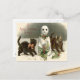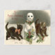 Kitten Cat Curious Snowman Holly Wreath Postcard