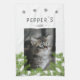 Kitten Cat Photo Pine Snowflake Keepsake kitchen towel. Cute first Christmas kitten photo kitchen towel with Christmas tree branches and snowflakes. Personalise it with your cat`s photo, name and year of birth - insert your favourite kitten photo. A lovely and cute holiday keepsake for a cat owner.