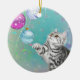 Silver tabby kitten bats playfully at Christmas ornaments holiday cat lover Christmas ornament