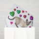 A Siamese kitten holds a big red heart on this colourful cat love tissue paper.