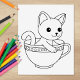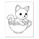 Adorable little kitten seems to be quite happy sitting in a teacup. Suitable for colouring.